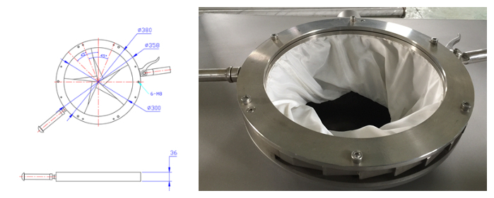 虹膜閥由兩個(gè)連有柔性袖筒同心圓環(huán)組成,袖筒的一頭與內(nèi)環(huán)相連,另一頭與外部控制環(huán)相連。控制環(huán)上安裝有手柄,手柄可以180度旋轉(zhuǎn)。通過(guò)旋轉(zhuǎn),袖筒被扭曲成松、緊合完全閉合等狀態(tài)。