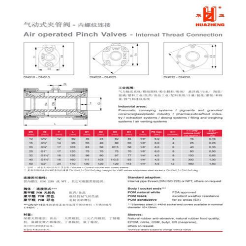 KMC系列氣動夾管閥公稱通徑供貨范圍:DN10-DN50。